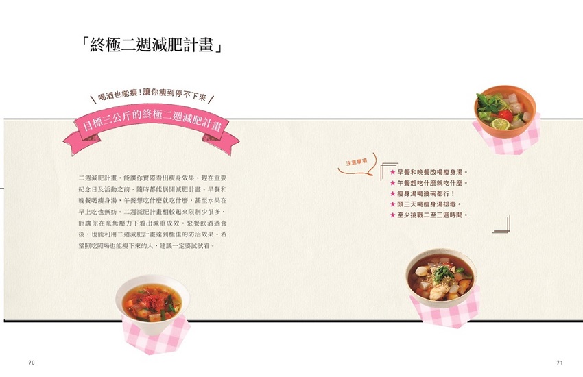 3.收錄「瘦肚湯減肥計畫」,大吃過後也不用擔心,立即啟動淨腸燃脂計畫。