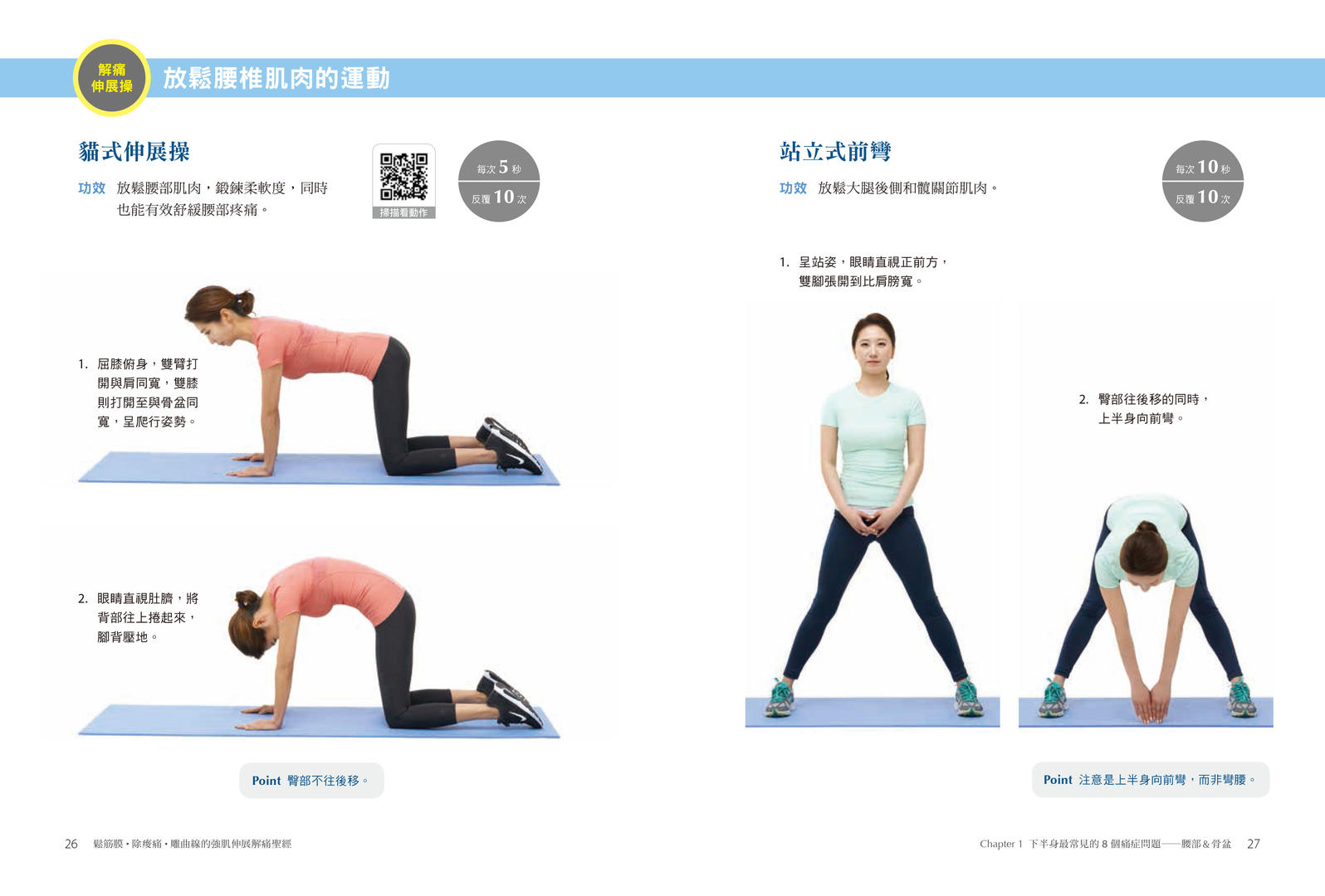 書中收錄常見的28個痛症,共114個動作,只要依需求選擇適合的動作並搭配影片,每天運動15分鐘,就能矯正歪斜的身體,打造理想體態。如果你有下列困擾,做這些動作最有效!